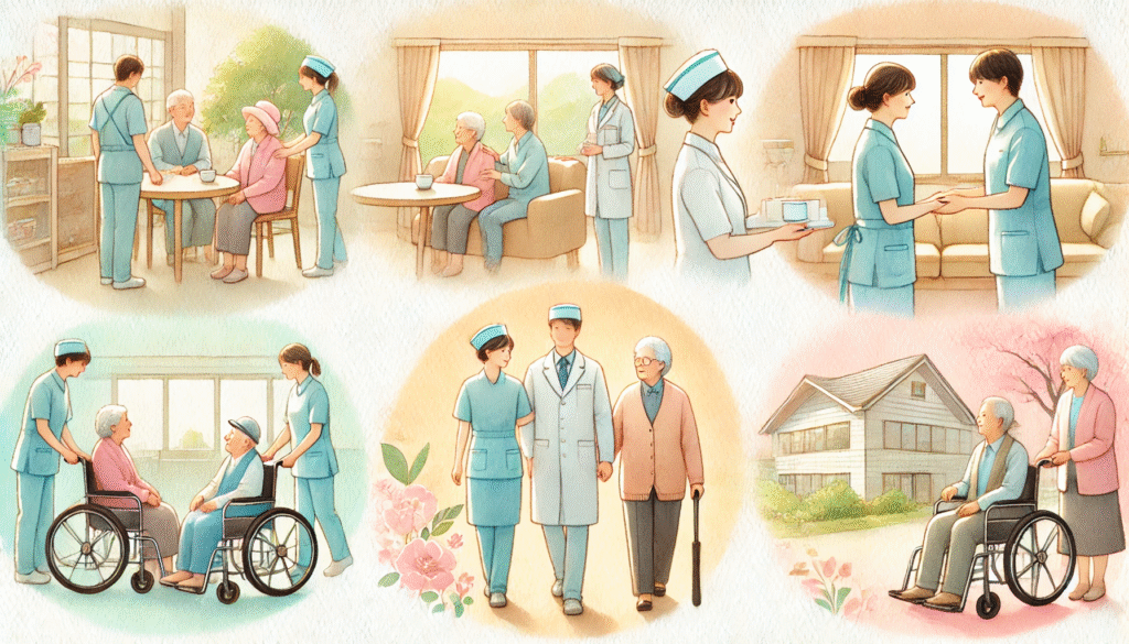 デイサービスでは、日中に利用者が通所して入浴や食事、レクリエーションなどを行います。介護福祉士は送迎業務も担当し、利用者の安全を確保しながら笑顔で過ごせる環境を整えます。夜勤がないため、家庭との両立を重視する人に人気の職場です。限られた時間の中で効率よくケアを行うスキルや、利用者一人ひとりへの丁寧な対応が求められます。