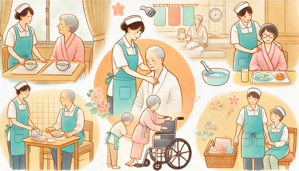 身体介護は介護福祉士の最も基本的な業務です。食事介助では、誤嚥を防ぐために一口ごとの速度や姿勢を細かく調整し、入浴介助では転倒の危険を回避しながら、利用者が心地よく過ごせるように配慮します。排せつ介助はデリケートな行為であり、利用者の尊厳を保つために声かけの仕方やタイミングにも細心の注意が必要です。これらの介助は体力的にも負担が大きいですが、利用者が「ありがとう」と笑顔を見せてくれる瞬間に大きなやりがいを感じる職種でもあります。