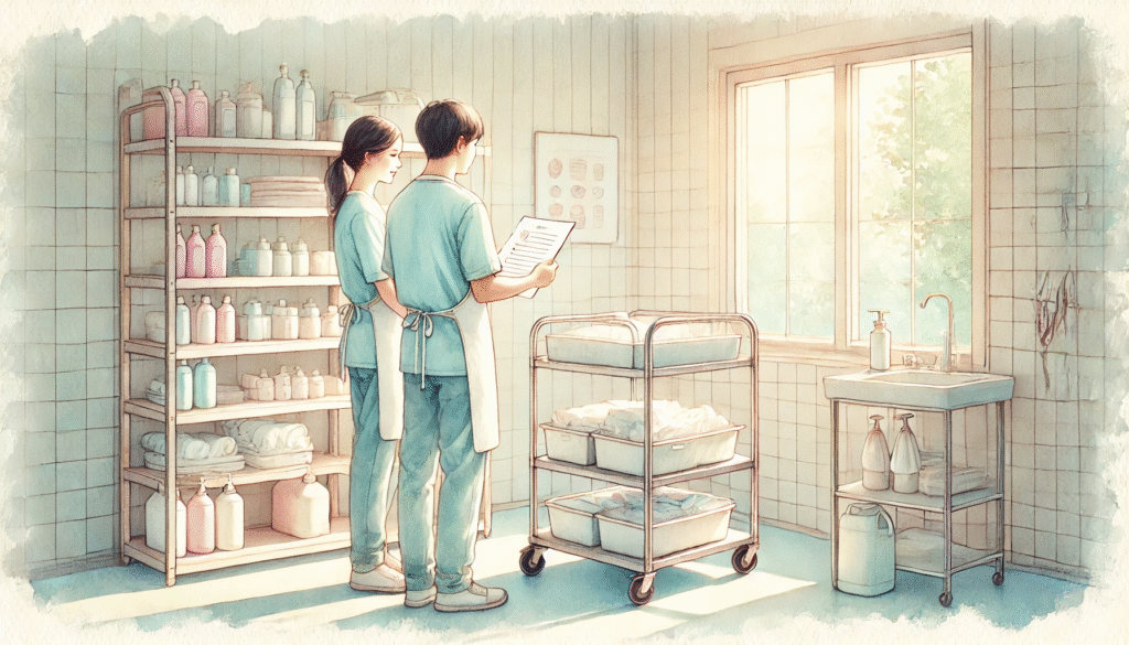 声かけについても、「今から体を横に向けますね」「少しだけお尻を拭きますよ」など、基本のフレーズを揃えておくと、利用者の安心感が高まり、協力を得やすくなります。